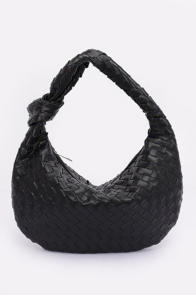 Faux Leather Braided Big Hobo Bag-50920
